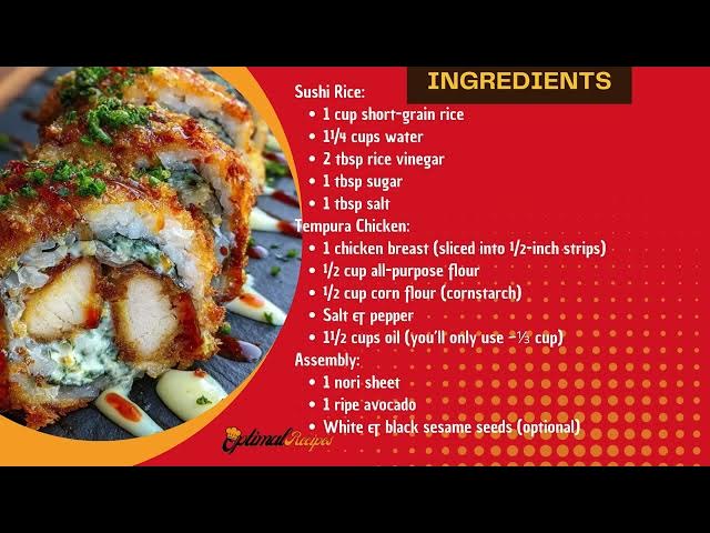 Love sushi but want something crunchy and satisfying? Try this Crispy Chicken Tempura Roll Recipe—an easy 30-minute sushi roll you can make at home! 🍣🍗✨ Featuring crispy tempura-fried chicken wrapped in seasoned rice and nori, this roll is perfect for sushi nights, quick dinners, or party platters. No raw fish, no stress—just bold, delicious flavor!